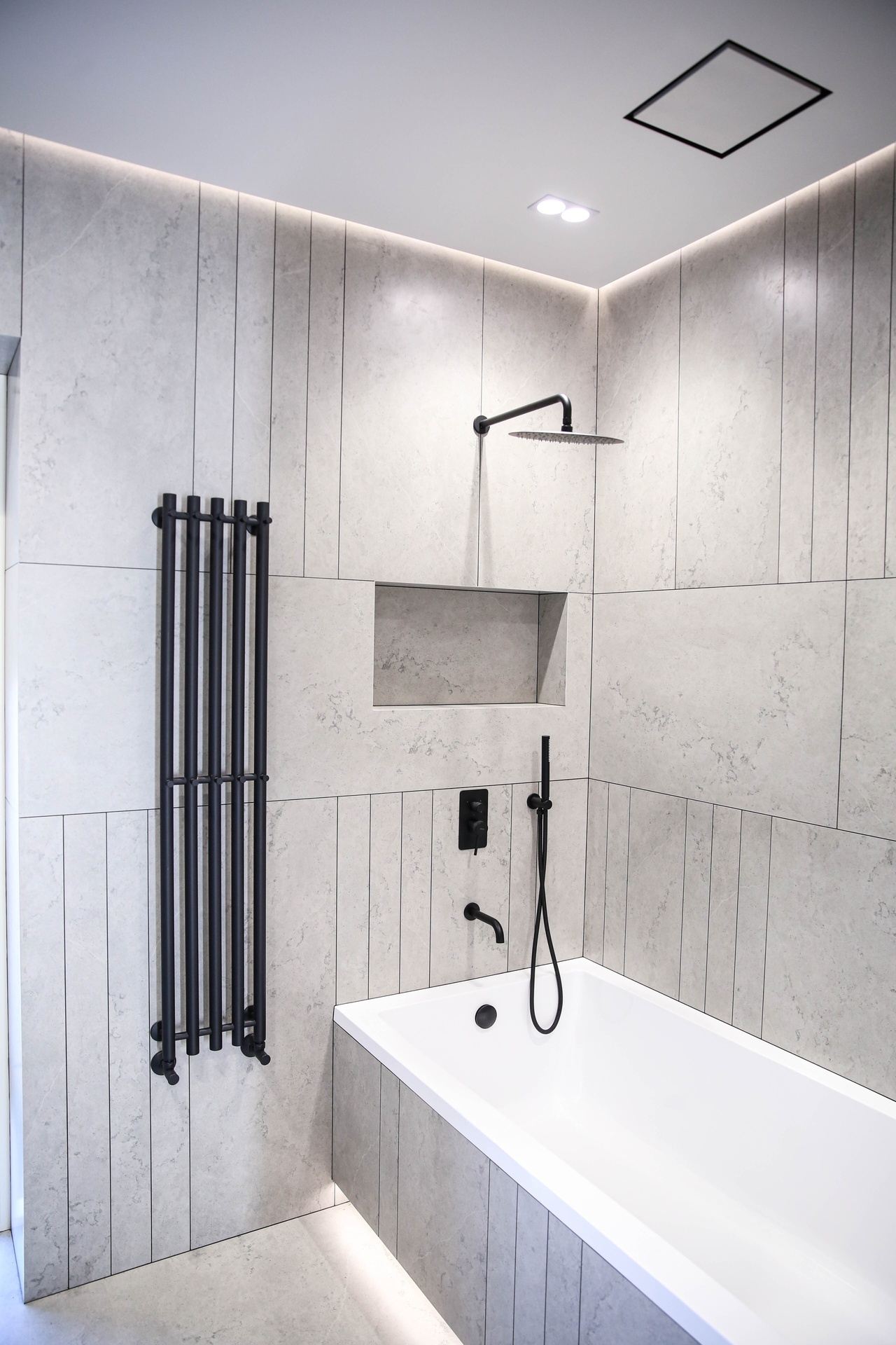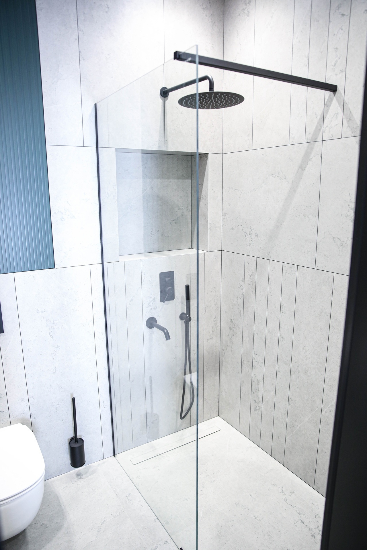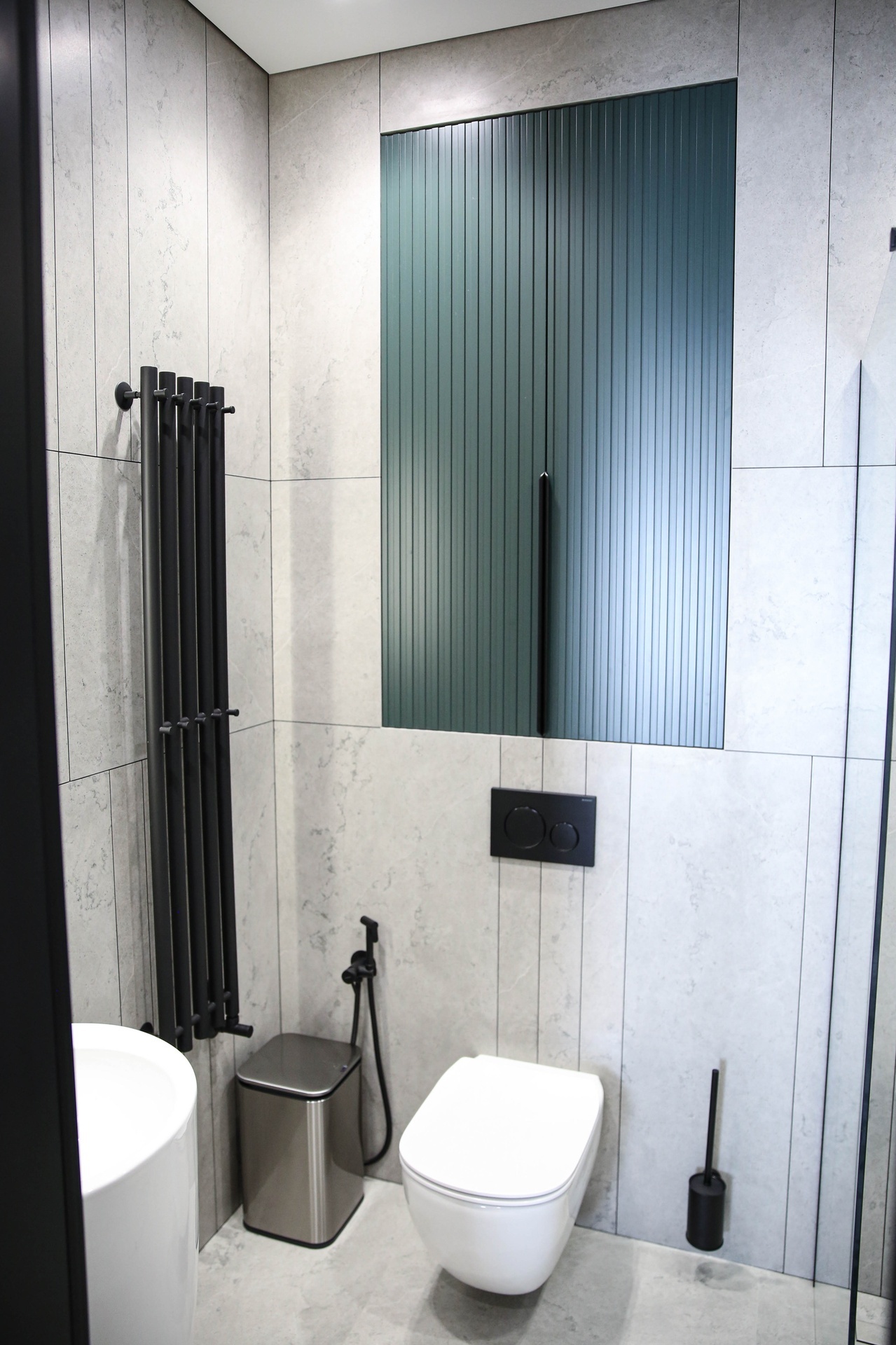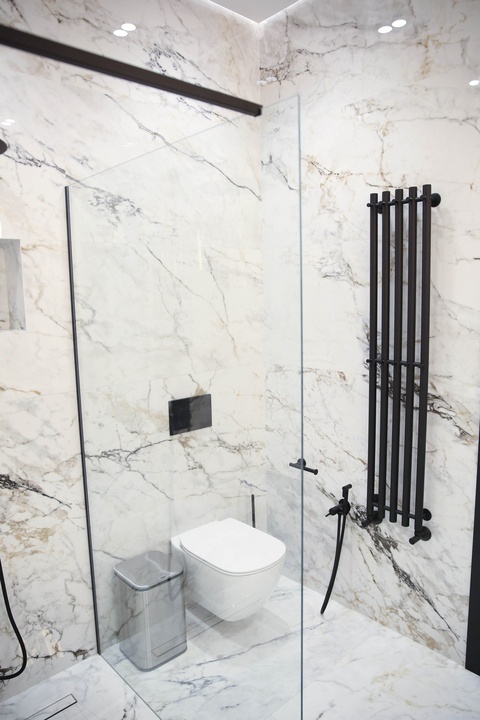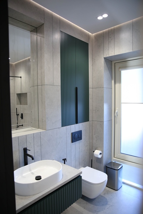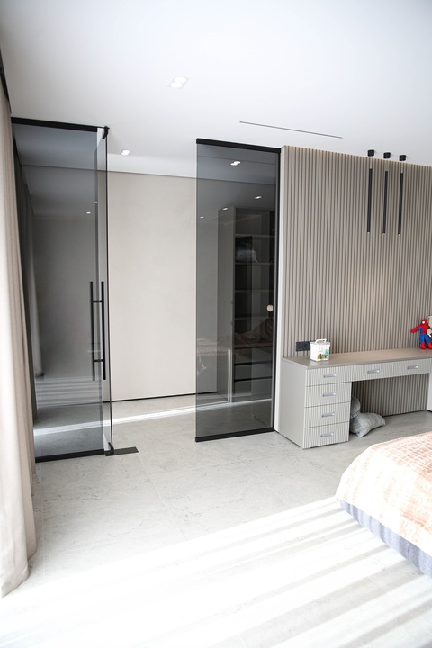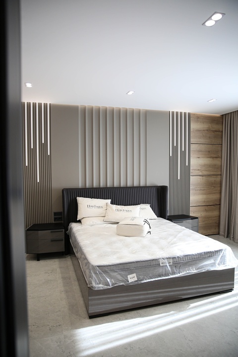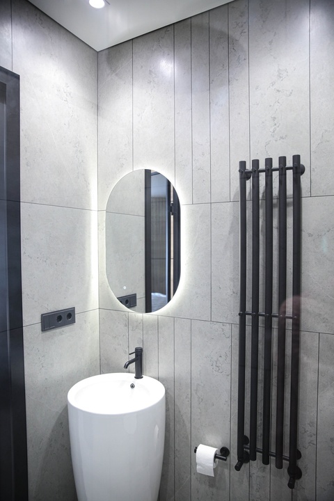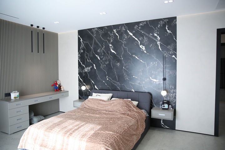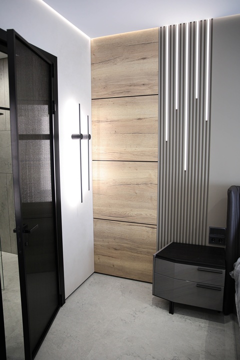 Мы превратили стены и гипсокартон в идеально ровное полотно, на котором теперь играет свет от современной трековой системы. Изящный теневой плинтус создаёт эффект парящих стен, добавляя интерьеру лёгкости и строгости. А акцентные стены из декоративной штукатурки притягивают взгляд, даря пространству тактильную глубину и характер.