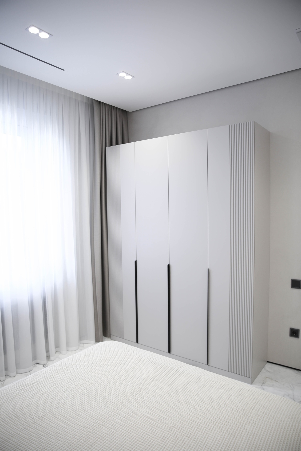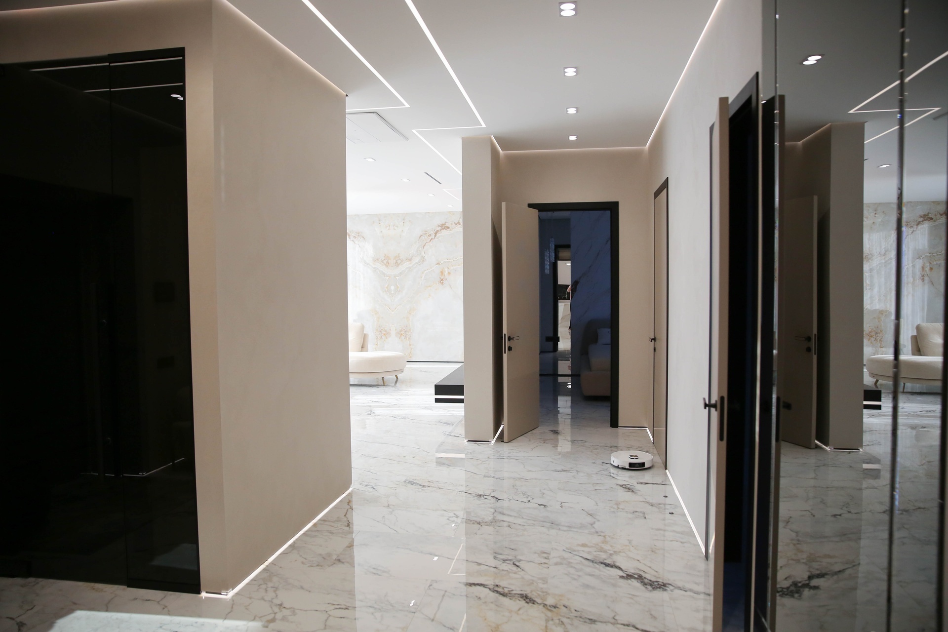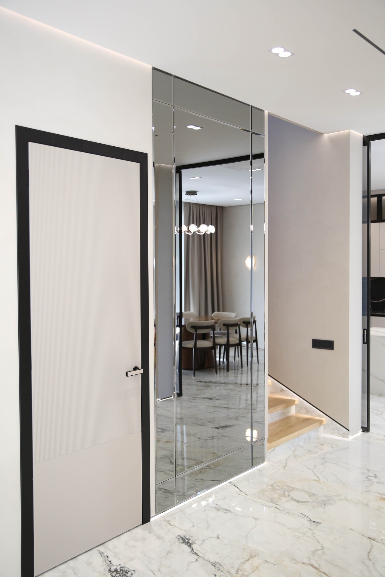 Это — высший пилотаж малярного искусства, где безупречная геометрия встречается с игрой света и тени, создавая современное и сдержанно-роскошное пространство.